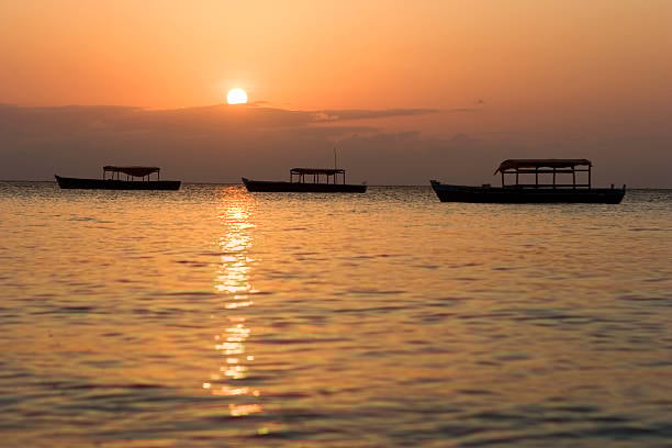 Sun setting behind some anchored Dhow's off the coast of Zanzibar